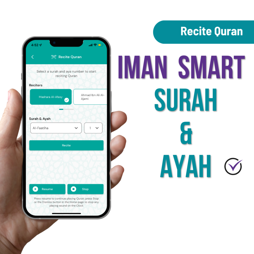 Aplikasi iman smart mengandungi fungsi Bacaan surah Al – Quran dan Ruqiah & Duaa
