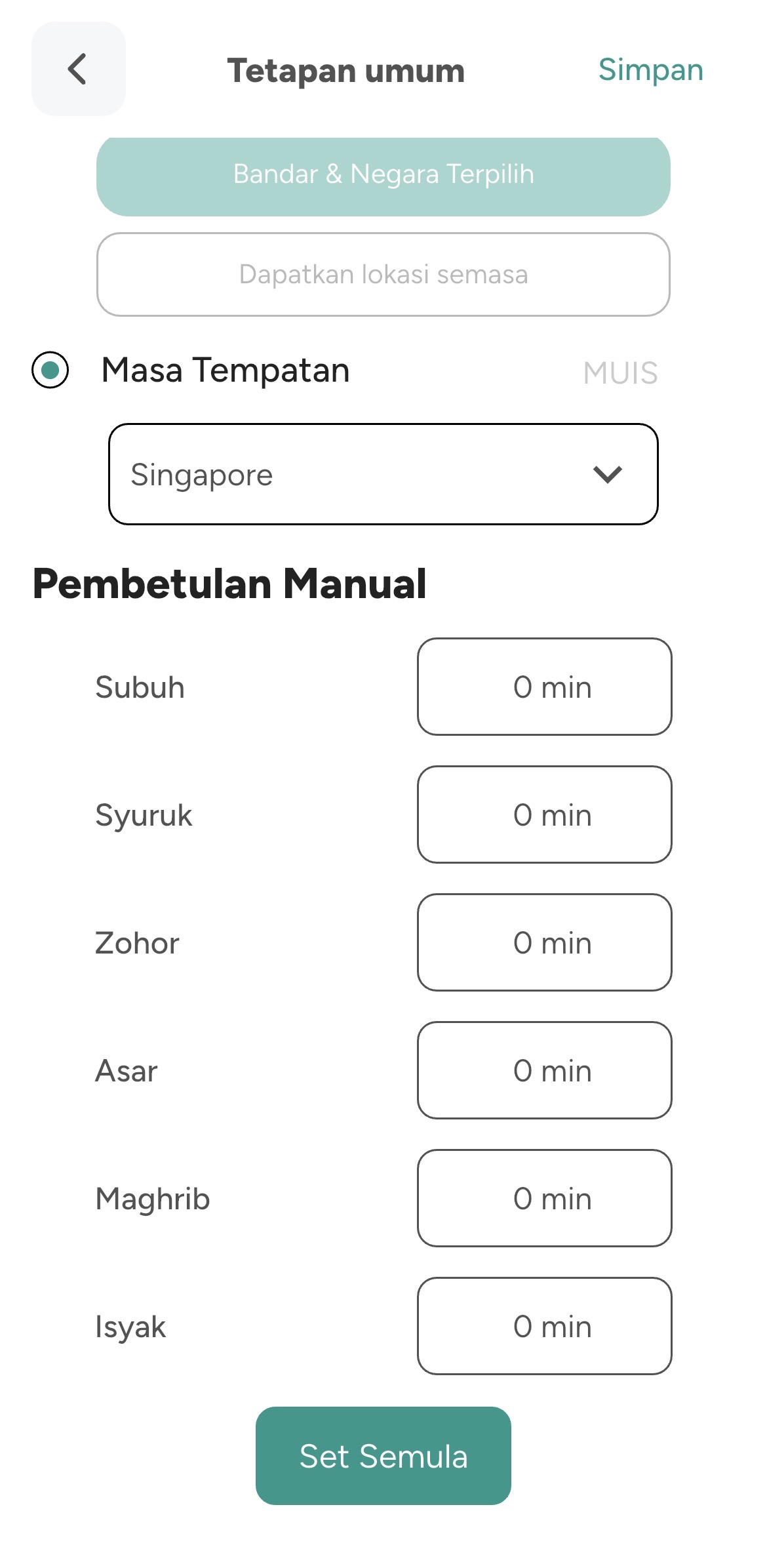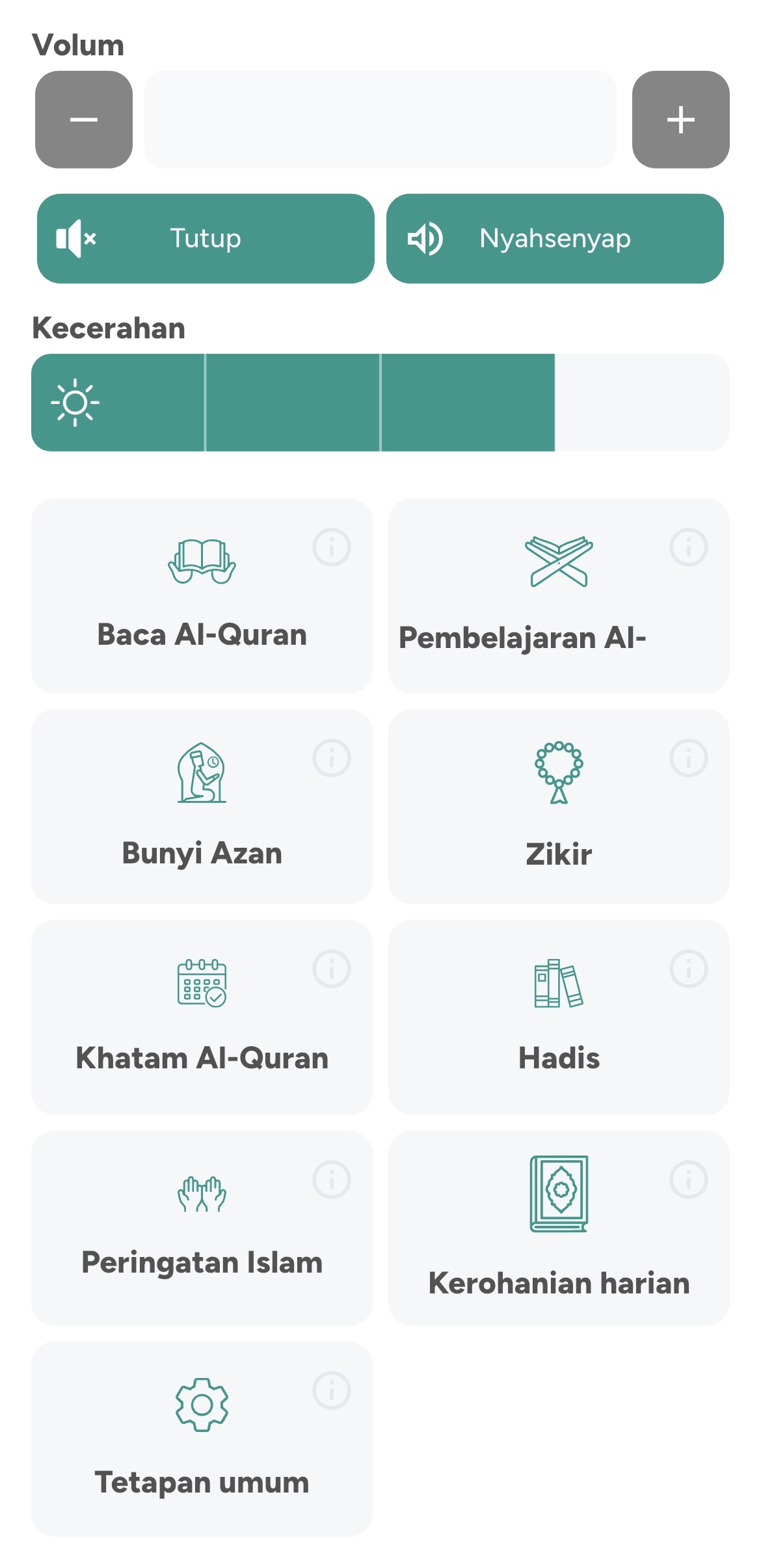 | 20 Minit Selepas Subuh (Sepanjang Ramadhan) | Ramadhan Imsak | 30 Saat |